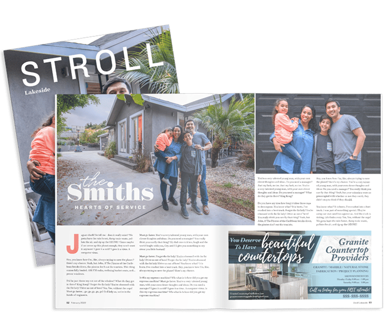 We invite you to become part of the heartbeat of our community by contributing articles and photographs of travels, special events, pets, etc. to be published in our upcoming Stroll monthly magazines! Feel free to reach out; we're always interested in your stories and ideas.